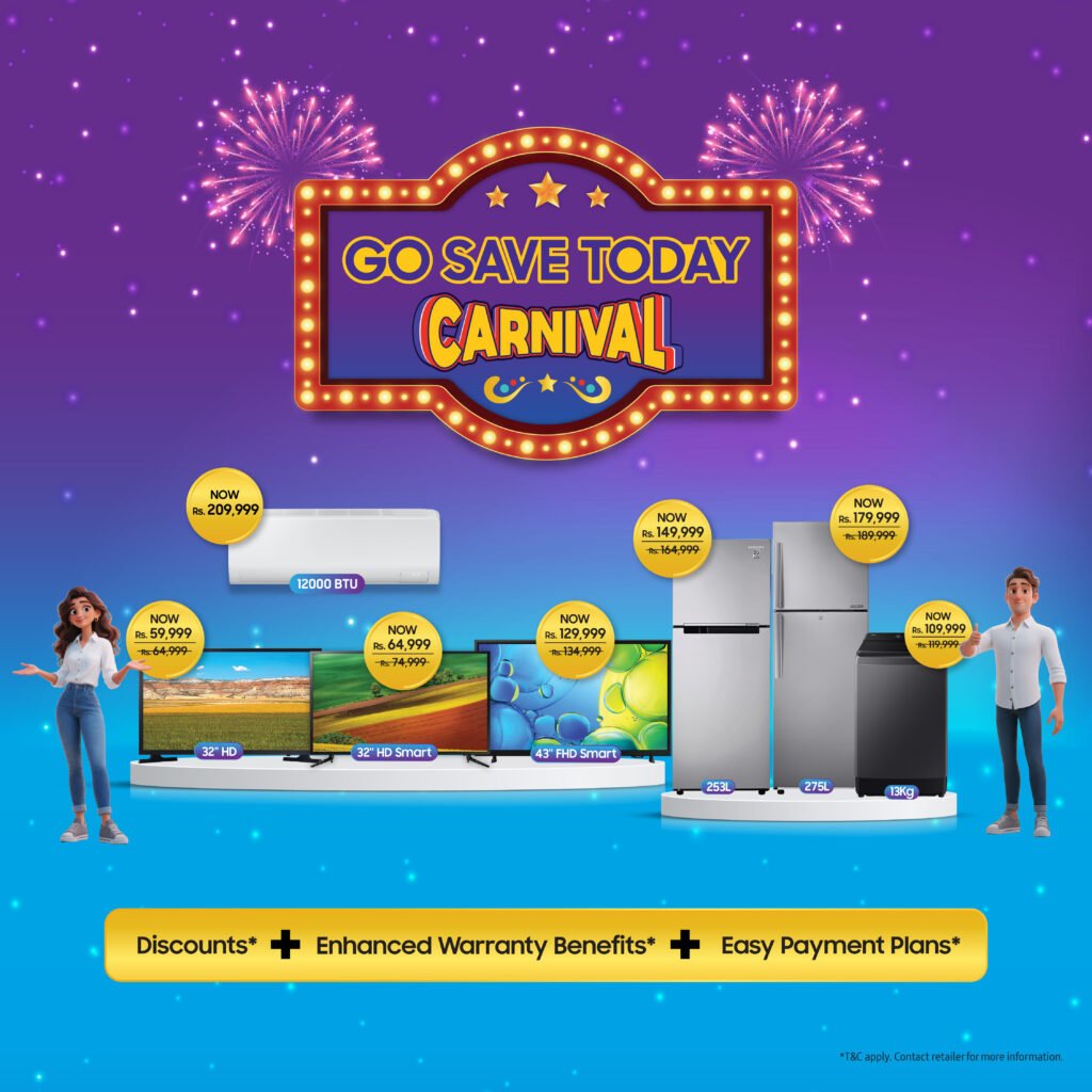 Samsung Sri Lanka நிறுவனம் தனது புதிய “Go Save Today” திருவிழா தொடர்பான அறிவிப்பை வெளியிட்டுள்ளது. தகவல் தொழில்நுட்பத் துறையின் முன்னணி நிறுவனமான Samsung, இலங்கை முழுவதும் உள்ள வாடிக்கையாளர்களுக்கு அதிரடி விலைக்குறைப்புடன் கூடிய இந்த சலுகைத் திட்டத்தை அறிமுகப்படுத்தியுள்ளது. இந்தக் களியாட்டத் திருவிழாவின் மூலம், வாடிக்கையாளர்கள் உலகத்தரம் வாய்ந்த Samsung தயாரிப்புகளை குறைந்த விலையில் வாங்கி தங்கள் இல்லங்களை நவீனமயமாக்கிக் கொள்ள முடியும்.