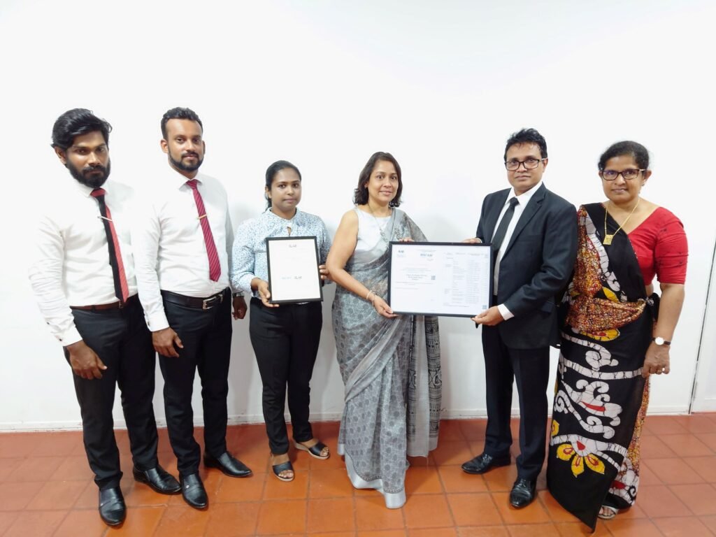 Seen here is Baurs Director of IT Anoja Basnayake with the team receiving the ISO 17025 accreditation for organic fertilizers from the officials