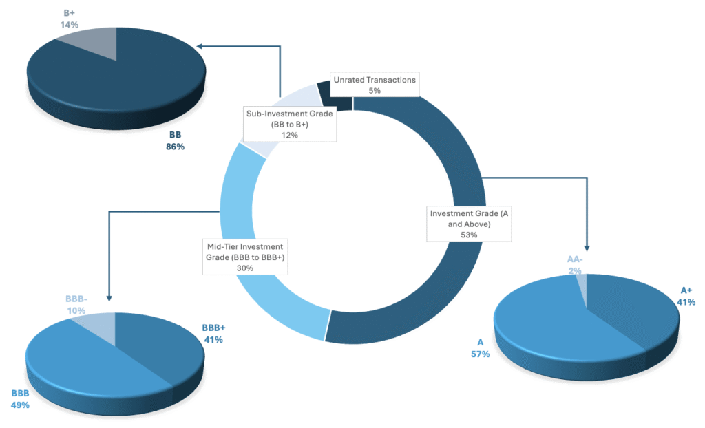 The transactions span a broad credit spectrum. The majority of the transactions fall within the investment-grade category, with a balanced distribution across other risk tiers. Unrated structures were supported by comprehensive internal credit assessments and credit enhancements where appropriate.